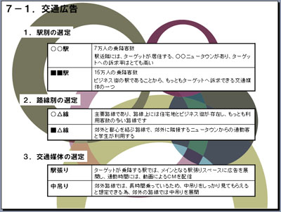交通媒体は、土地勘がない人にとっては、どの路線にどのような属性を持った人が乗り降りしているのかわかりません。そのような場合には交通媒体の特性と、最適な駅や交通媒体を選出して提案します。