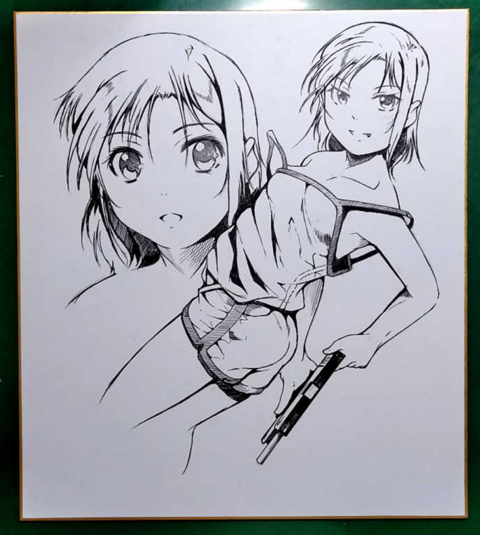 掲載まで時間があるので、ヒロインの女の子を色紙に描いてみました。