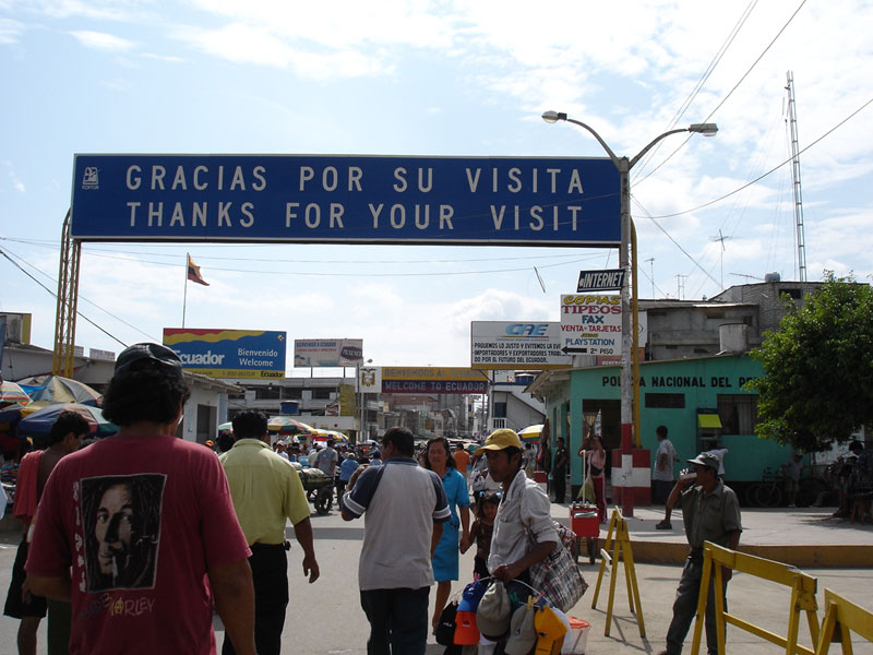 「ペルーはどうだった?」と聞くので「ムイ・ビエン!」と答え、握手をして5秒で終了。何だかいい奴で橋の向こうにあるエクアドル側の税関まで連れて行ってくれた。