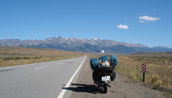 ガソリンを入れようとすると店員が何処から来た?とお決まりの質問をしてくる。日本から、ブエノに行き、ウシュアイア・カラファテを通ってここまで来たというと、びっくりして給油も途中で止めて大声で他の店員を呼ぶ。その声で他の客までコルデーロ号に集る。いつの間にか黒山の人だかり。みんなから色々質問されるが、スペイン語なのでよく分からん。一人チリのサンチャゴから来ているオッサンが英語で通訳をしてくれる。この後、チリを通り、ペルー、エクアドル・中米諸国・アメリカ・カナダ・アラスカまで行くと言ったら、皆一様に驚く。