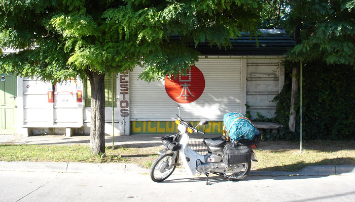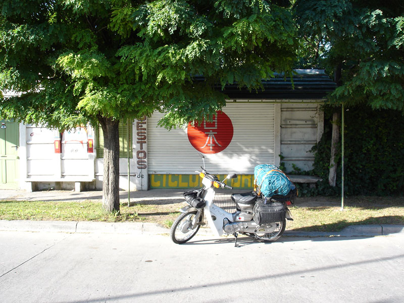 今日はバイアブランカの街まで約380キロの長旅だ。大きなバイクならひとっ走りなんだろうなぁと思うと悔しいが、俺が選んだこの旅の相棒カブだって最高にいいバイクだ。今日も頑張ってくれよ。