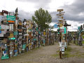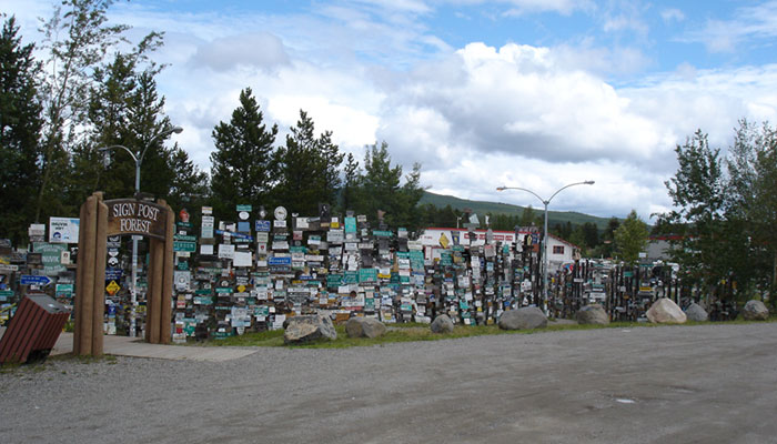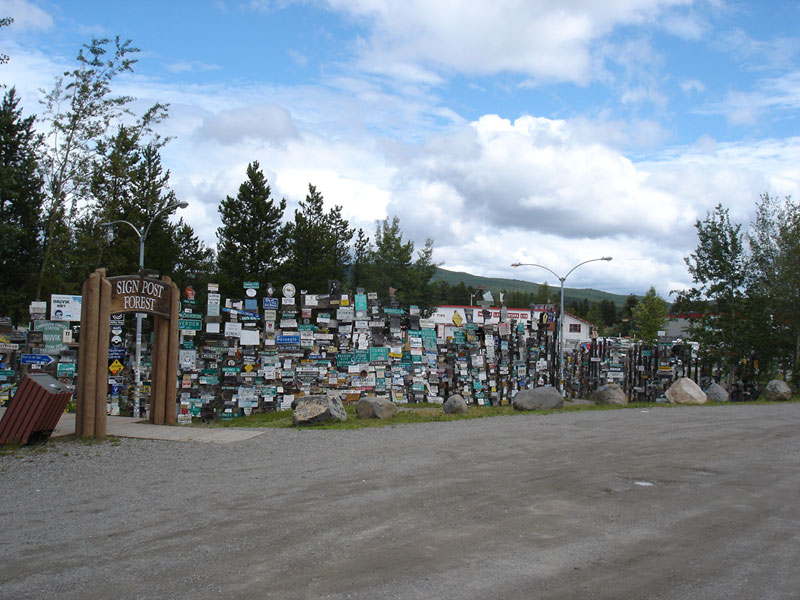 昼過ぎに起きると小雨になっていた。一時雨が止んだので町にある有名なサインフォレストを見に行ってみる。旅行者が色んなサインを作ってここに貼っていくのだ。今年の春現在で56000枚以上のサインがあるという。暫く歩くと、どいうらさんのサインを発見。2000年にココにきてるのか!ということはもう、5年以上旅を続けているのか。改めてスゲー人だ。俺も何か残したかったが、材料もアイディアも浮かばないので、アラスカからフェリーに乗れなかった場合に帰りに貼って帰ろうと思う。