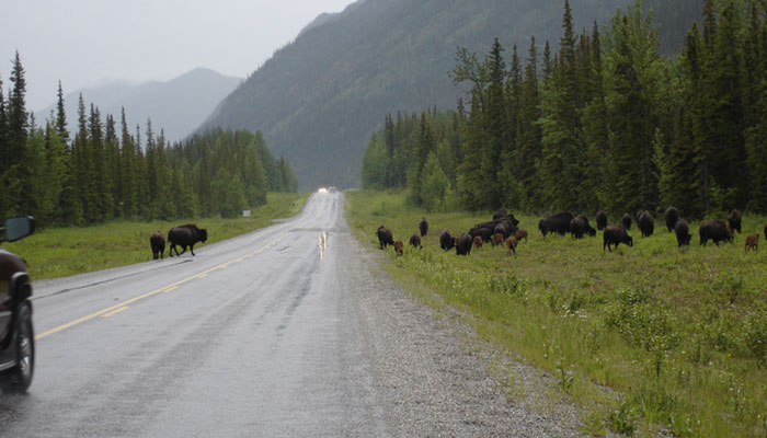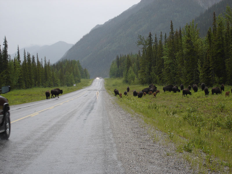 再び走りつづけGSでガスを入れる。店でコーヒーとドーナツを買って外で食っていると3台のバイクがやってきた。アラスカまで走って帰る途中だそうだ。「アラスカの天気はどうだった?」と聞くと「毎日、雨が降り続けた。2週間走ったが、晴れたのは今日が初めてだ。気を付けてな」と言って走り去って行った。ホワイトホースのホステルに泊まれるなら一週間くらいノンビリして天気の良くなるのを待つことにしよう。ここまで来て毎日雨の中を走ることもあるまい。金は無くなって来たがまだ時間はある。