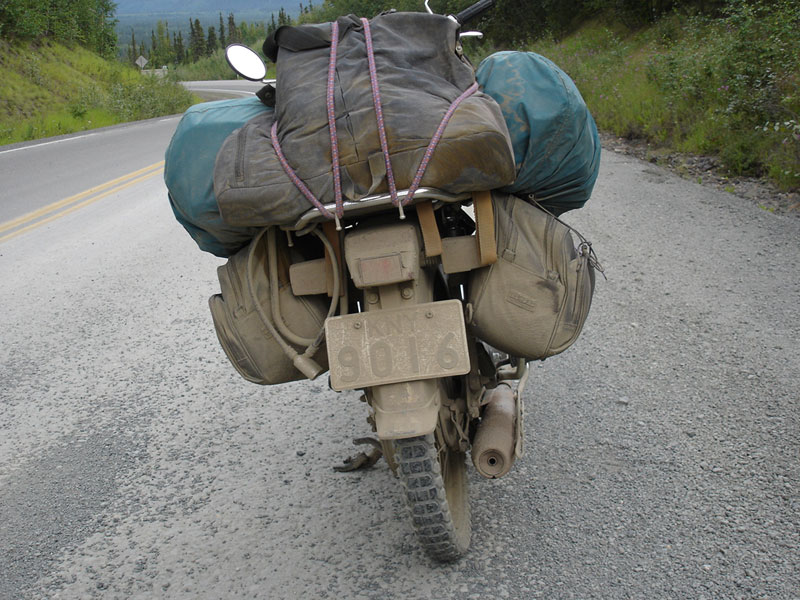 ジャンクションで一服する。ドロドロになったコルデーロ号、出発前に交換したタイヤはもう、坊主寸前だ。ココからはフェアバンクスまで舗装路100キロを残すだけ。安堵感が身を包む。