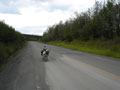 ユーコン川に掛かる長い橋を超えた辺りで、空にドンヨリとした暗雲が出てきた。前方にドカン!ドカン!と雷が落ちている。やはり、雷だけは怖い。が、縦断達成の祝砲だと思って割り切る。