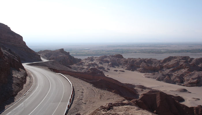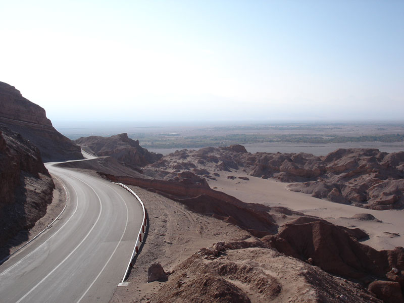 時速30キロほどで坂道を登り終えると長い長い下りが待っていた。サンペドロらしきオアシスが眼下に見える。殆ど坂道らしいを道を登った気はしないけれど、結構高い峠道だったようだ。高度計があれば良かったな。