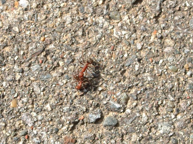 バッタを運ぶ働きアリ